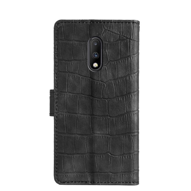 Θήκη για OnePlus 7 με υφή δέρματος κροκόδειλου, μαγνητικό κούμπωμα, οριζόντια αναδιπλούμενη από δερματίνη PU με βάση & υποδοχές καρτών & πορτοφόλι (Μαύρο)