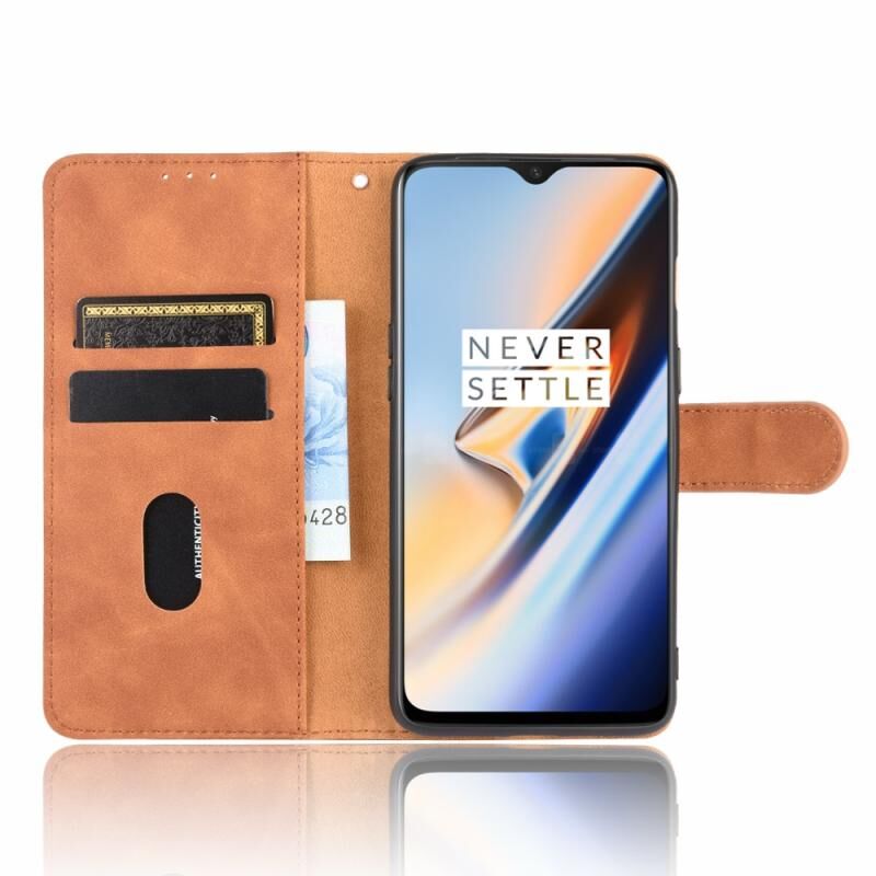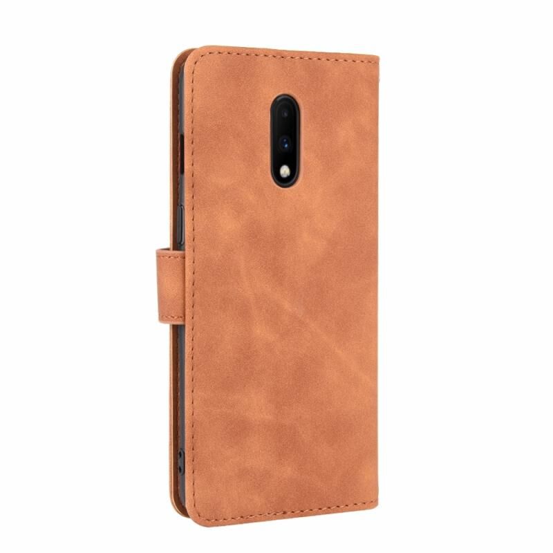 Για OnePlus 7 Αμιγές χρώμα δέρμα αίσθηση μαγνητική πόρπη οριζόντια Flip μοσχάρι υφή PU δέρμα υπόθεση με κάτοχο & υποδοχές καρτών & πορτοφόλι (καφέ)