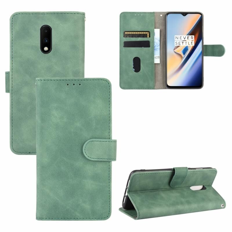 Για OnePlus 7 Αμιγές χρώμα δέρμα αίσθηση μαγνητική πόρπη οριζόντια Flip μοσχάρι υφή PU δέρμα υπόθεση με κάτοχο & υποδοχές καρτών & πορτοφόλι (πράσινο)
