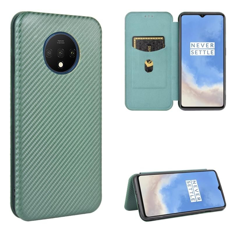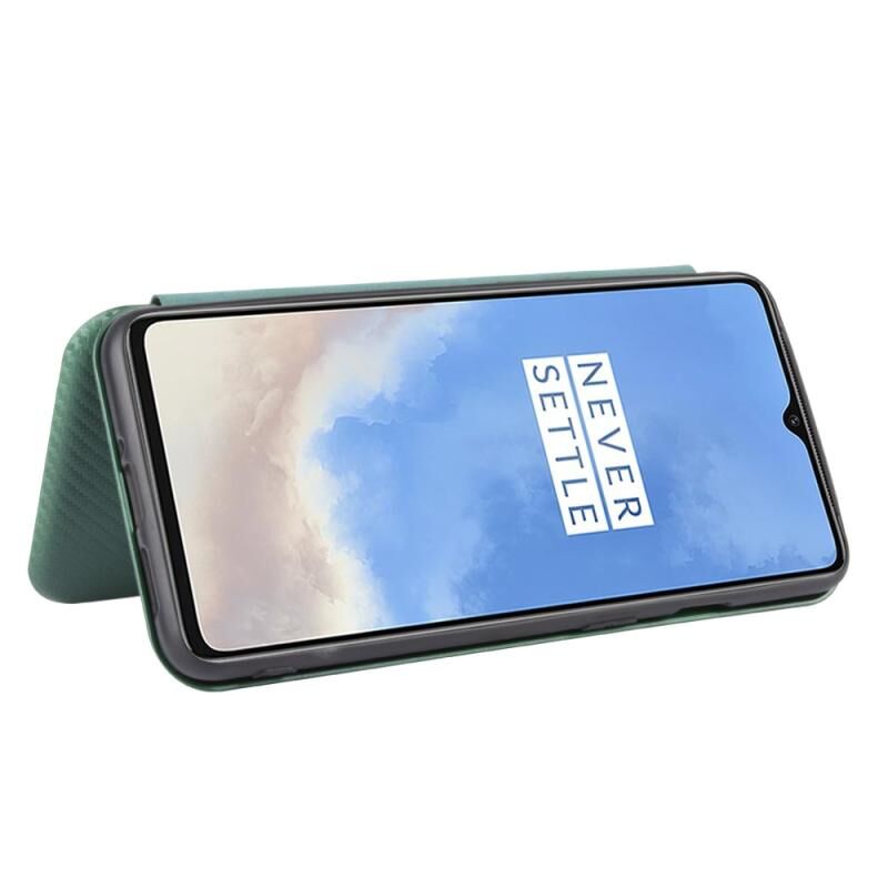Για OnePlus 7T Carbon Fiber υφή οριζόντια Flip TPU + PC + PU δερμάτινη θήκη με υποδοχή κάρτας (πράσινο)