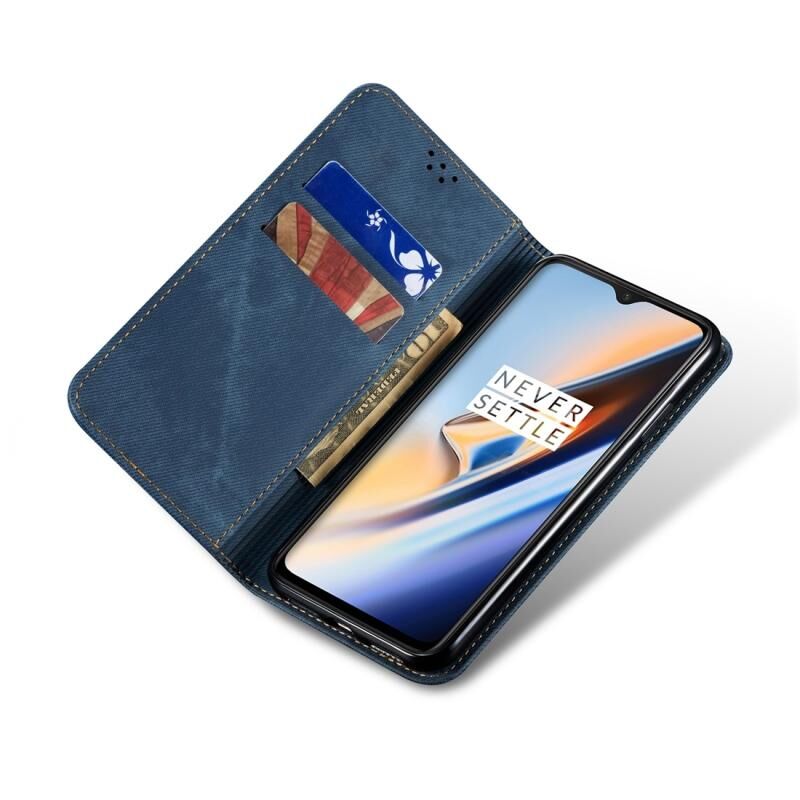 Για OnePlus 7T Denim Υφή Casual Style Οριζόντια Flip δερμάτινη θήκη με κάτοχο & υποδοχές για κάρτες & πορτοφόλι (μπλε)