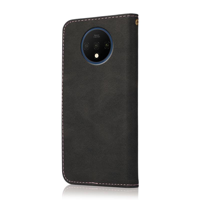 Θήκη τηλεφώνου από δέρμα με διπλή ραφή για OnePlus 7T (Καφέ Κόκκινο)