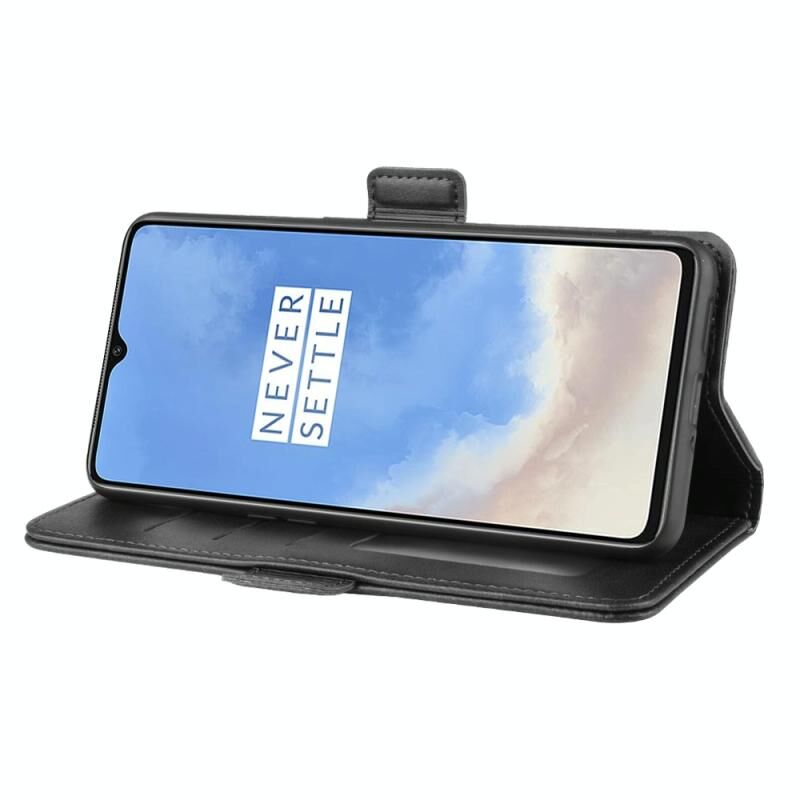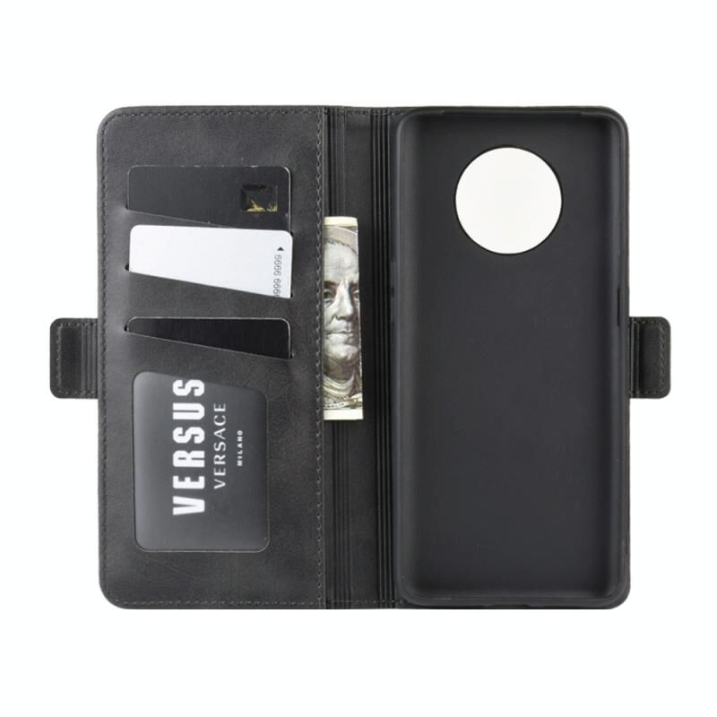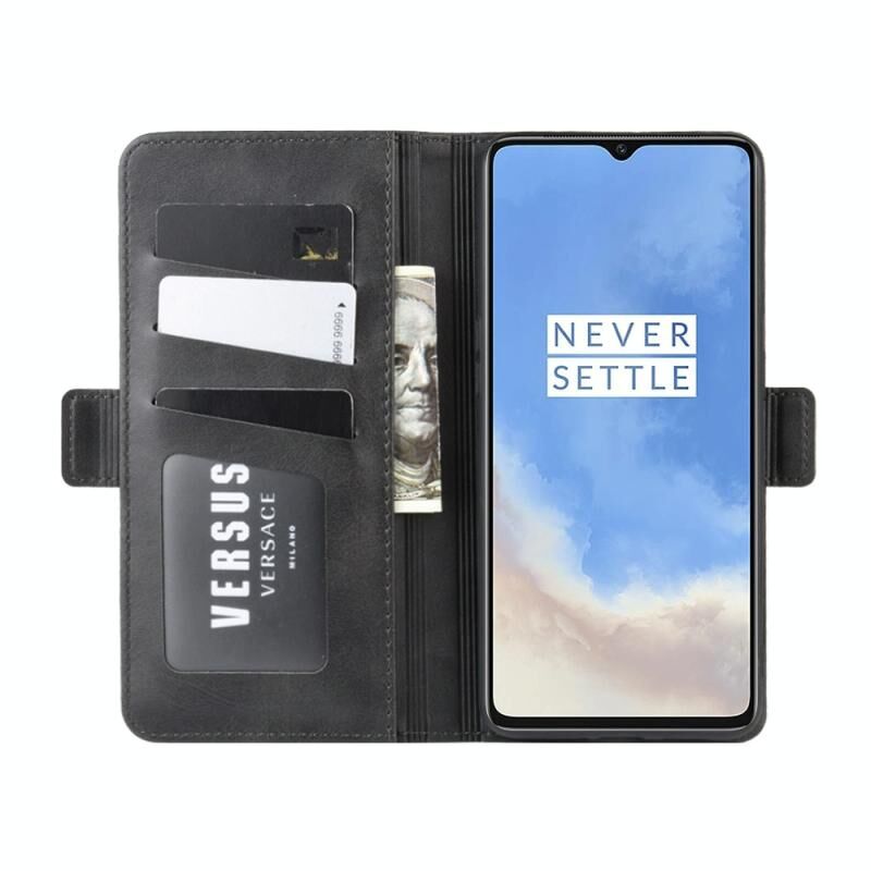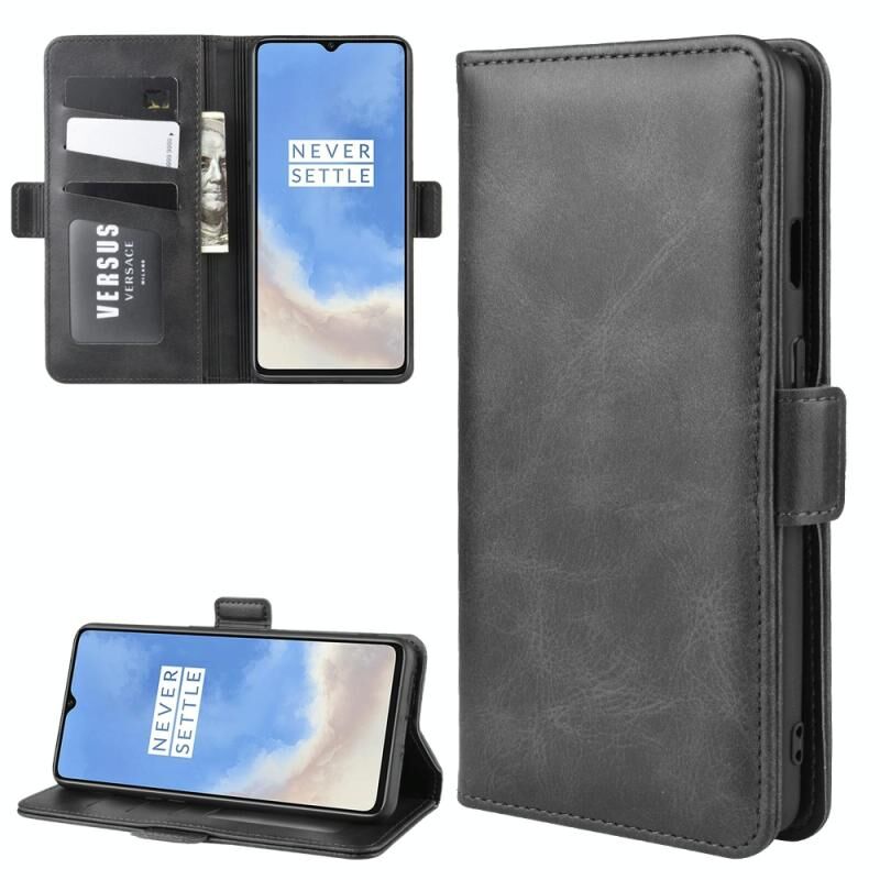 Για OnePlus 7T διπλής όψης μαγνητική πόρπη οριζόντια Flip δερμάτινη θήκη με θήκη & υποδοχές καρτών & πορτοφόλι & πλαίσιο φωτογραφιών (μαύρο)