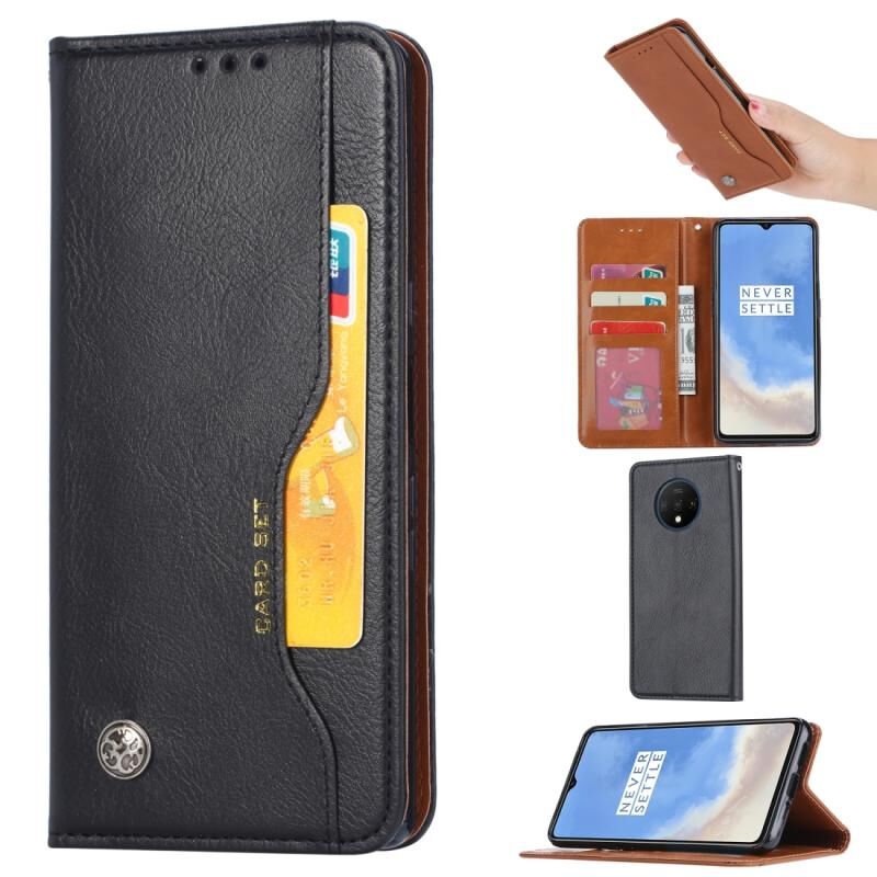 Για OnePlus 7T Knead δέρμα υφή οριζόντια Flip δερμάτινη θήκη με πλαίσιο φωτογραφιών & κάτοχος & υποδοχές καρτών & πορτοφόλι (μαύρο)