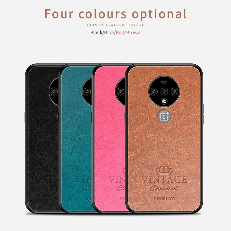 Για OnePlus 7T PINWUYO Pin Rui Series Κλασική Δερμάτινη, PC + TPU + PU Δερμάτινη Αδιάβροχη και Αντικραδασμική Προστατευτική Θήκη Παντός Τύπου (Μπλε) (PINWUYO)