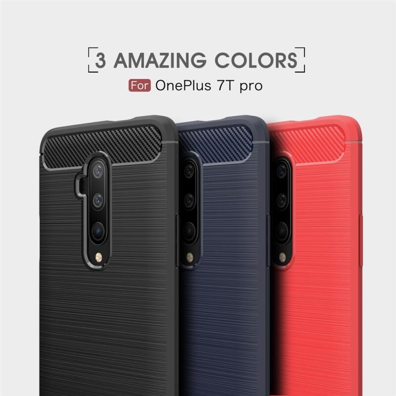 For Oneplus 7T Pro Brushed Texture Carbon Fiber TPU Case(Red)