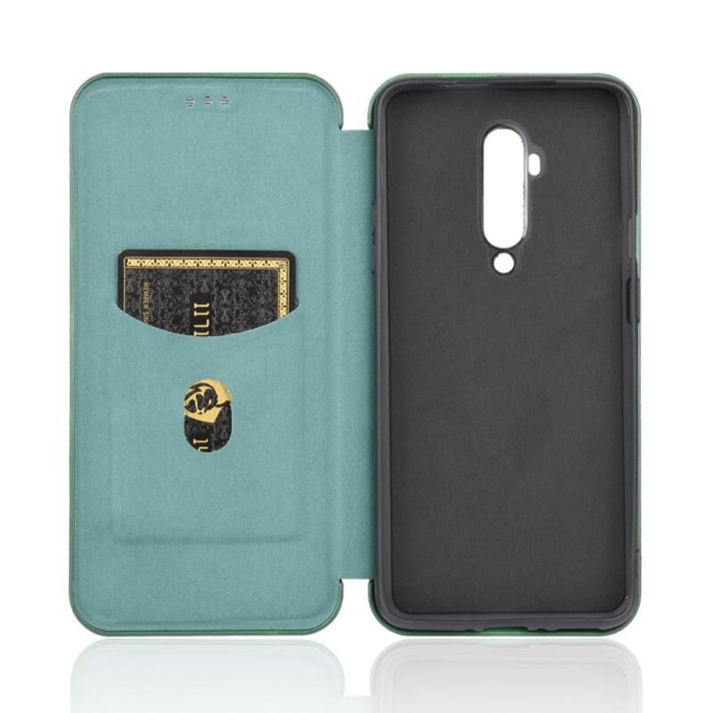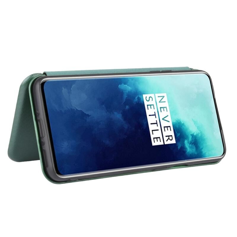 Για OnePlus 7T Pro Carbon Fiber υφή οριζόντια Flip TPU + PC + PU δέρμα υπόθεση με υποδοχή κάρτας (πράσινο)