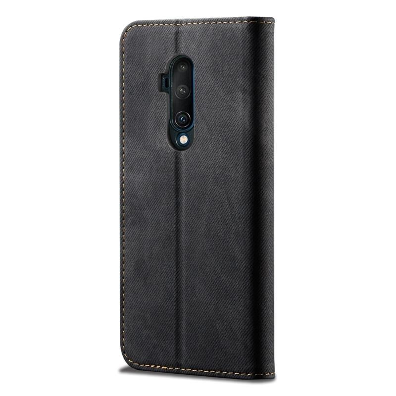 Για OnePlus 7T Pro Denim Υφή Casual Style Οριζόντια Flip δερμάτινη θήκη με θήκη & υποδοχές για κάρτες & πορτοφόλι (μαύρο)