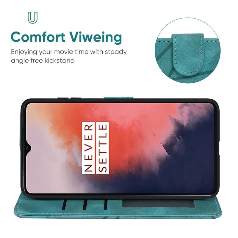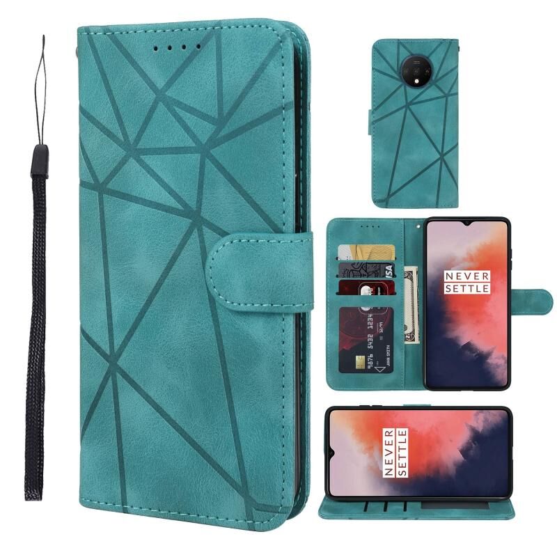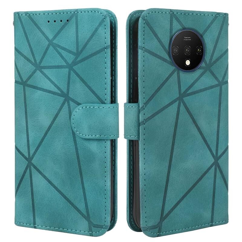 Για OnePlus 7T Skin Feel γεωμετρικές γραμμές δερμάτινη θήκη τηλεφώνου (πράσινο)