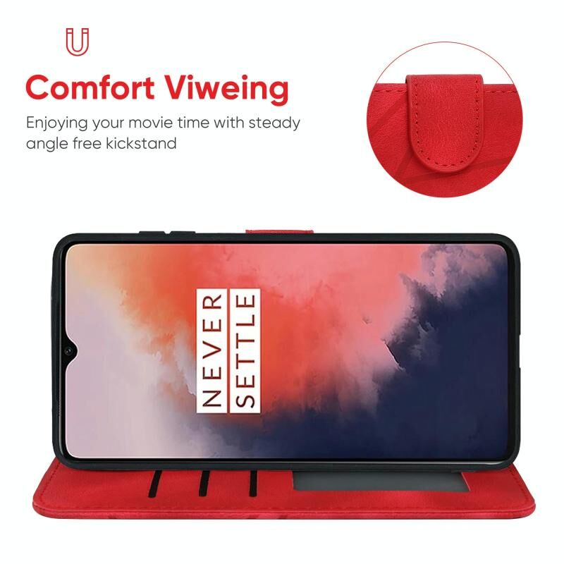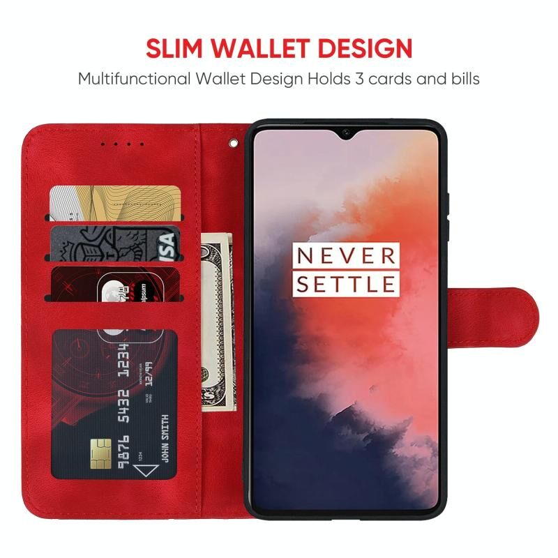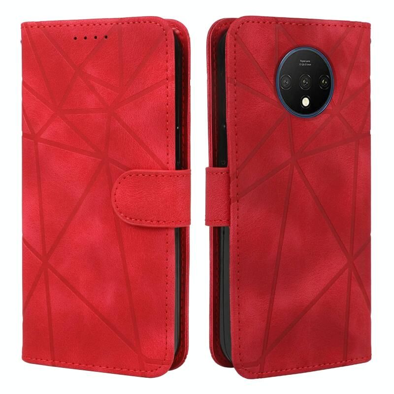Για OnePlus 7T Skin Feel γεωμετρικές γραμμές δερμάτινη θήκη τηλεφώνου (κόκκινο)