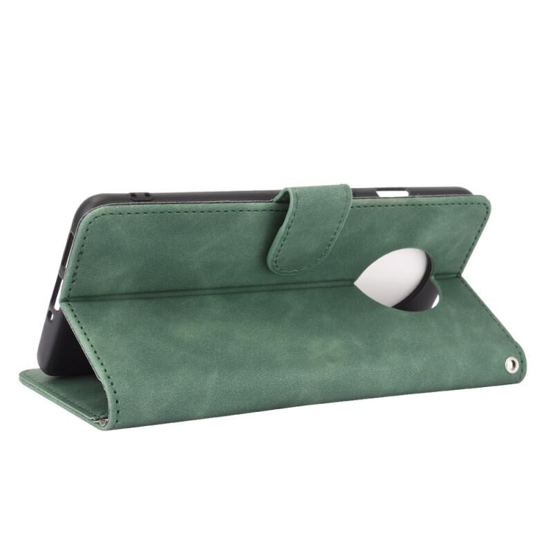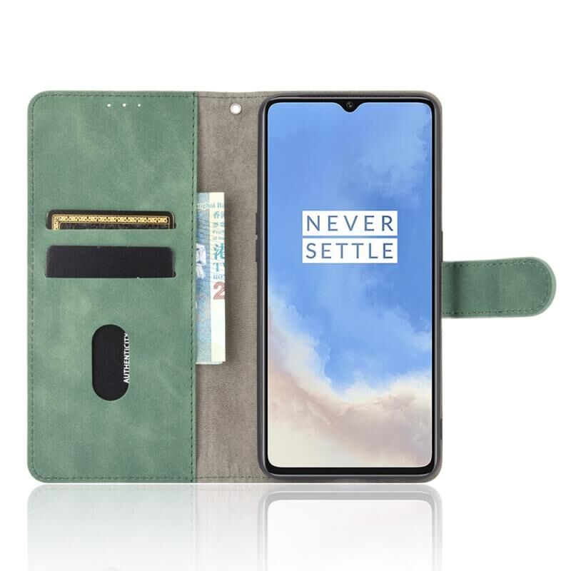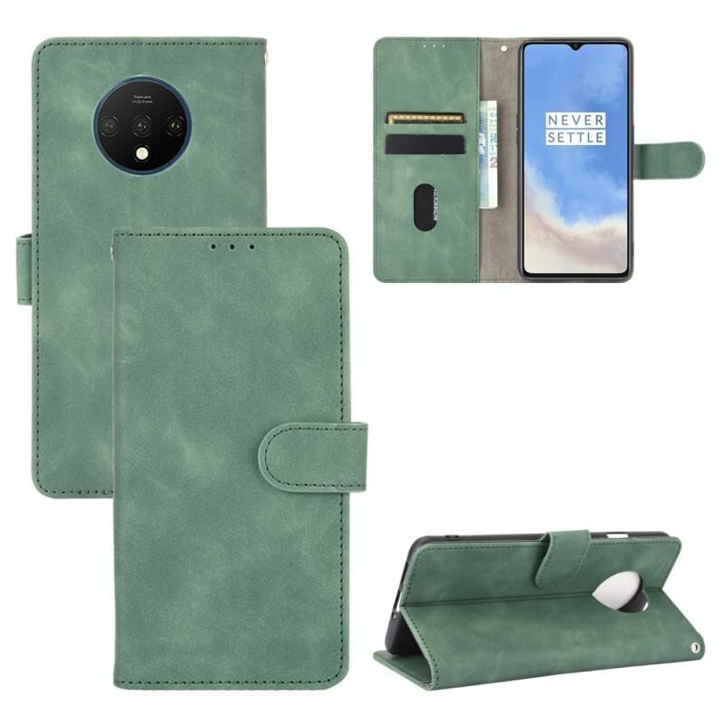 Για OnePlus 7T Αμιγές χρώμα δέρμα αίσθηση μαγνητική πόρπη οριζόντια Flip μοσχάρι υφή PU δέρμα υπόθεση με κάτοχο & υποδοχές καρτών & πορτοφόλι (πράσινο)