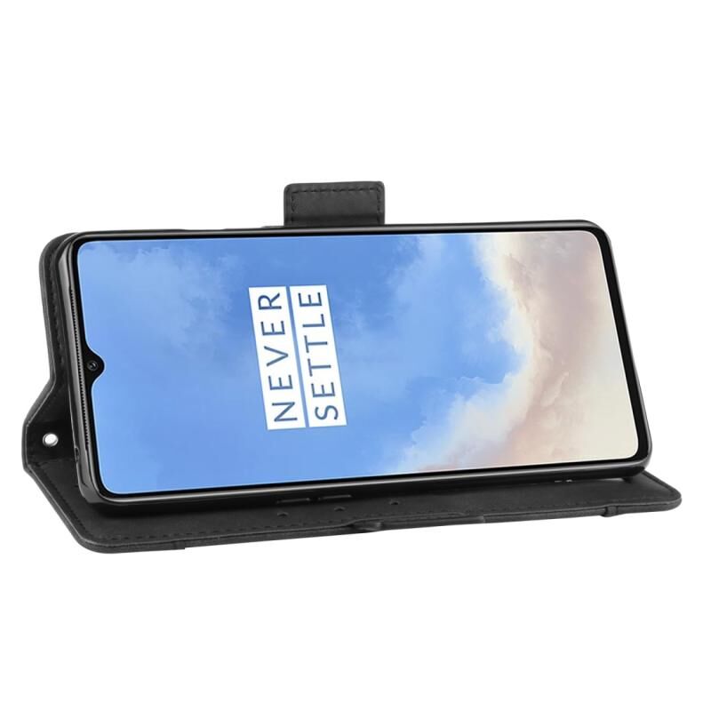 Για OnePlus 7T πορτοφόλι στυλ δέρματος δέρμα αίσθηση μοσχάρι μοτίβο δερμάτινη θήκη με ξεχωριστή υποδοχή κάρτας (μαύρο)