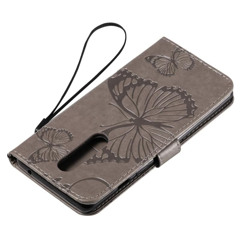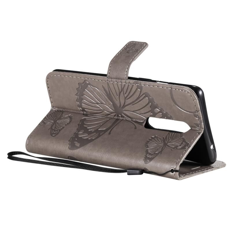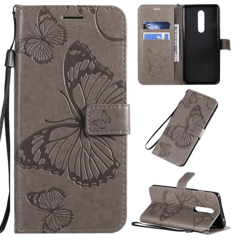 Θήκη δέρματος οριζόντιας αναδίπλωσης με ανάγλυφο σχέδιο 3D πεταλούδων για OnePlus 8, με βάση, θήκη καρτών, πορτοφόλι και λουρί (Μωβ)