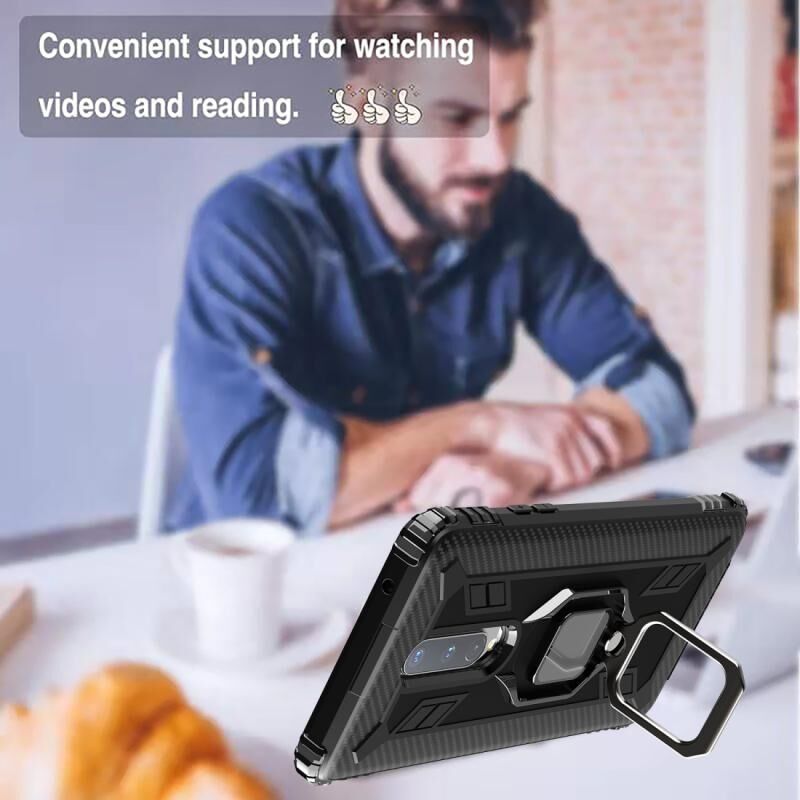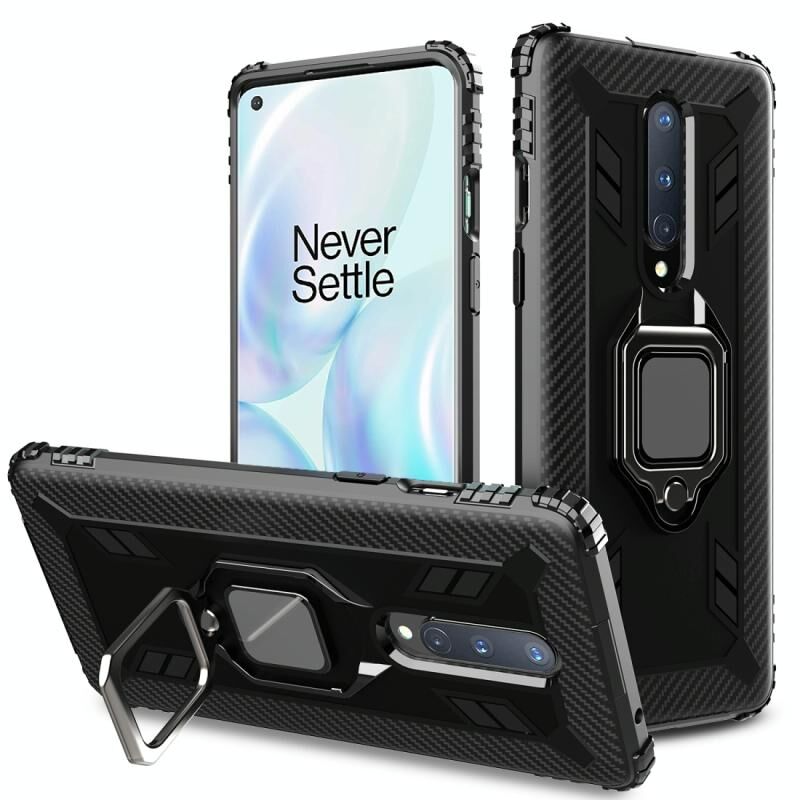 Για OnePlus 8 Carbon Fiber Προστατευτική θήκη με 360 μοίρες περιστρεφόμενο δαχτυλίδι κάτοχος (Μαύρο)