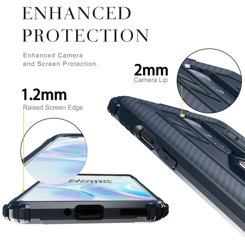 Για OnePlus 8 Carbon Fiber Προστατευτική θήκη με 360 μοίρες περιστρεφόμενο δαχτυλίδι κάτοχος (μπλε)