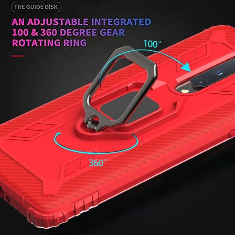 Για OnePlus 8 Carbon Fiber Προστατευτική θήκη με 360 μοίρες περιστρεφόμενο δαχτυλίδι κάτοχος (κόκκινο)