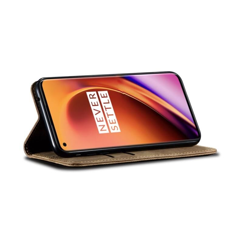 Για OnePlus 8 Denim Υφή Casual Style Οριζόντια Flip δερμάτινη θήκη με κάτοχο & υποδοχές για κάρτες & πορτοφόλι (χακί)