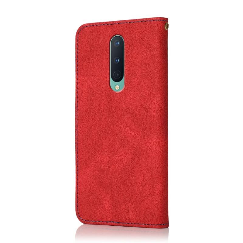 Θήκη τηλεφώνου από δέρμα με διπλή ραφή για OnePlus 8 (Καφέ Κόκκινο)
