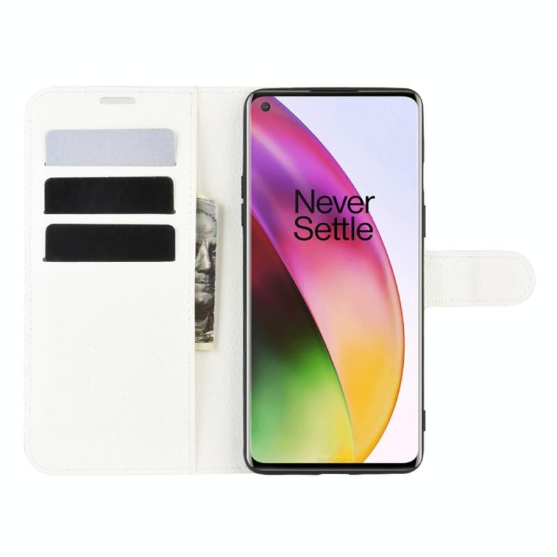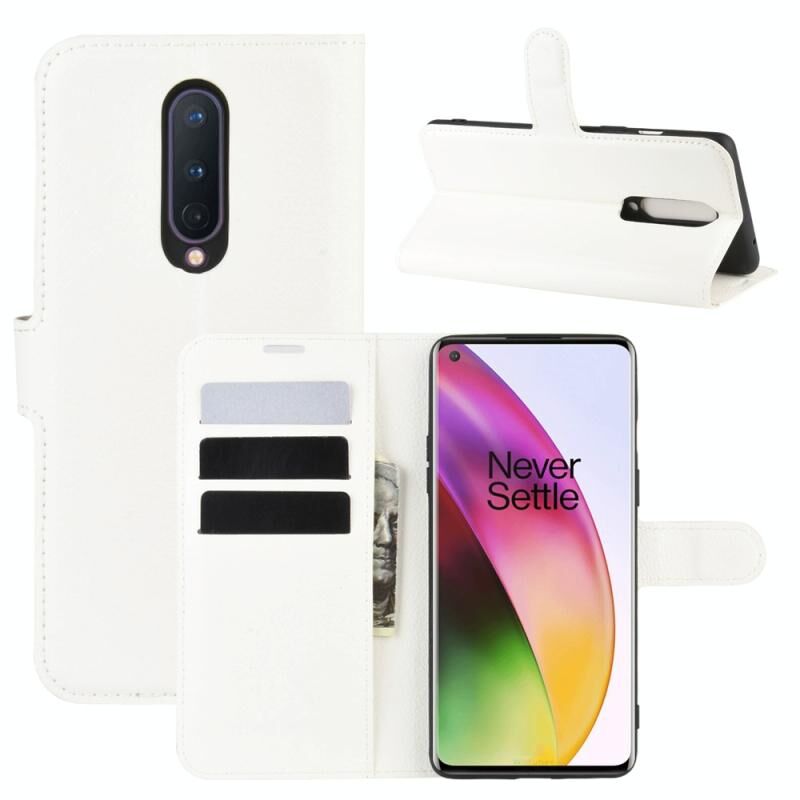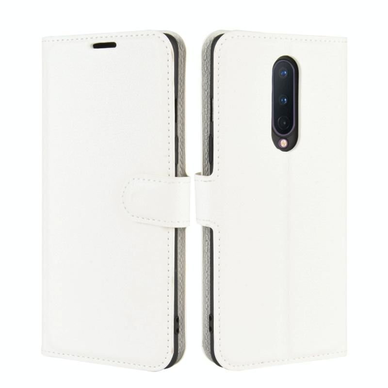 Για OnePlus 8 Litchi Υφή Οριζόντια Flip Προστατευτική θήκη με κάτοχο & υποδοχές καρτών & πορτοφόλι (Λευκό)
