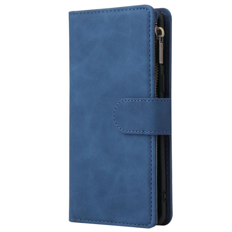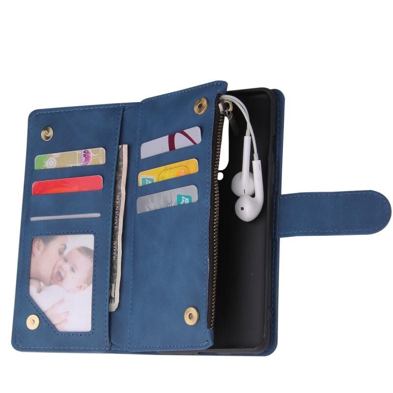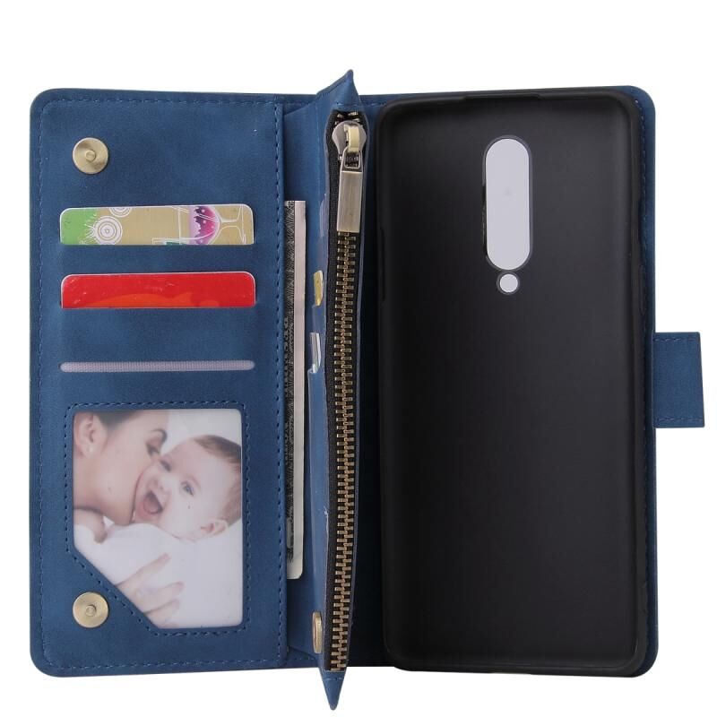 Για OnePlus 8 Πολυλειτουργική οριζόντια Flip δερμάτινη θήκη, με υποδοχή για κάρτες και θήκη για φερμουάρ, πορτοφόλι και πλαίσιο φωτογραφιών (μπλε)