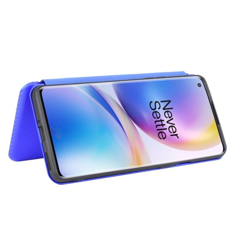 Για OnePlus 8 Pro Carbon Fiber υφή οριζόντια Flip TPU + PC + PU δέρμα υπόθεση με υποδοχή κάρτας (μπλε)