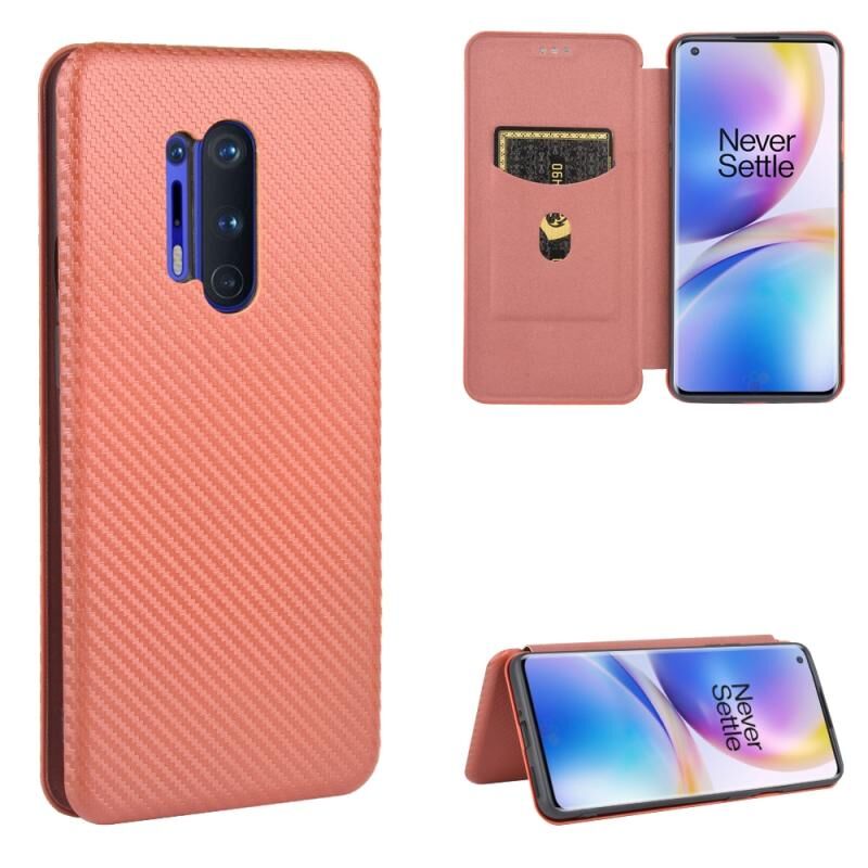 Για OnePlus 8 Pro Carbon Fiber υφή οριζόντια Flip TPU + PC + PU δέρμα υπόθεση με υποδοχή κάρτας (καφέ)