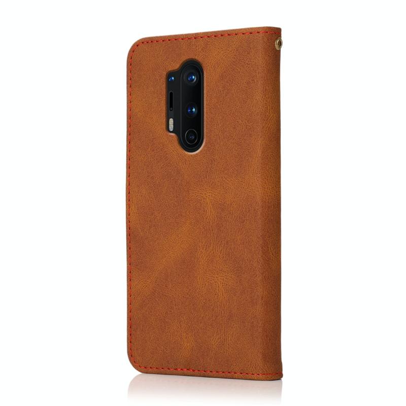 Θήκη τηλεφώνου από δέρμα με διπλή ραφή για OnePlus 8 Pro (Καφέ Κόκκινο)