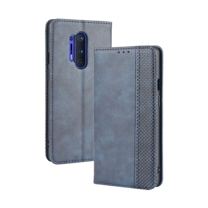 Για OnePlus 8 Pro Μαγνητική πόρπη Retro Crazy Horse Υφή οριζόντια Flip δερμάτινη θήκη με θήκη & υποδοχές καρτών & πλαίσιο φωτογραφιών (μπλε)