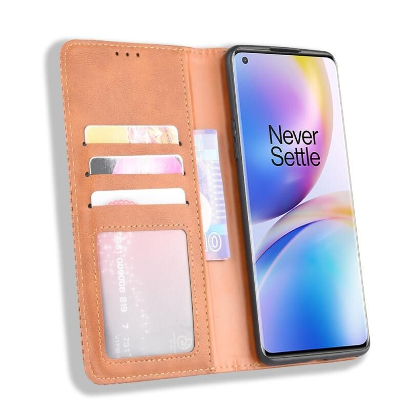 Για OnePlus 8 Pro Μαγνητική πόρπη Retro Crazy Horse Υφή οριζόντια Flip δερμάτινη θήκη με θήκη & υποδοχές καρτών & πλαίσιο φωτογραφιών (καφέ)