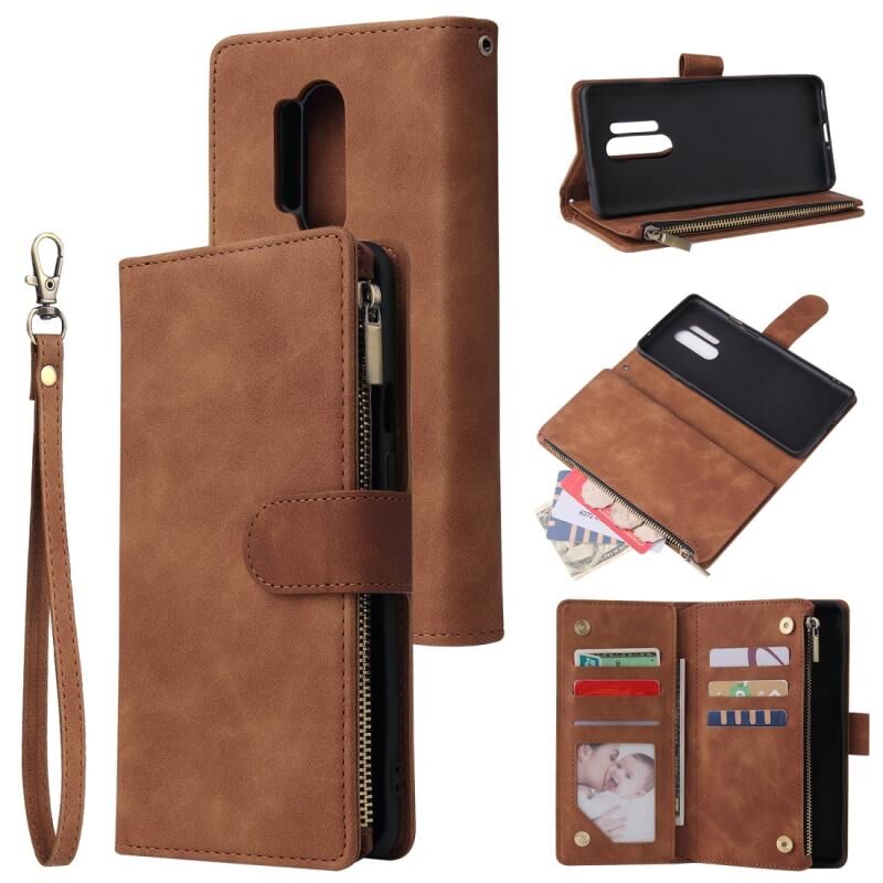 Για OnePlus 8 Pro Πολυλειτουργική οριζόντια Flip δερμάτινη θήκη, με υποδοχή για κάρτες & υποδοχή & φερμουάρ πορτοφόλι & κορνίζα φωτογραφιών (καφέ)