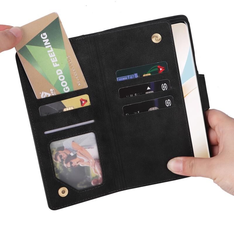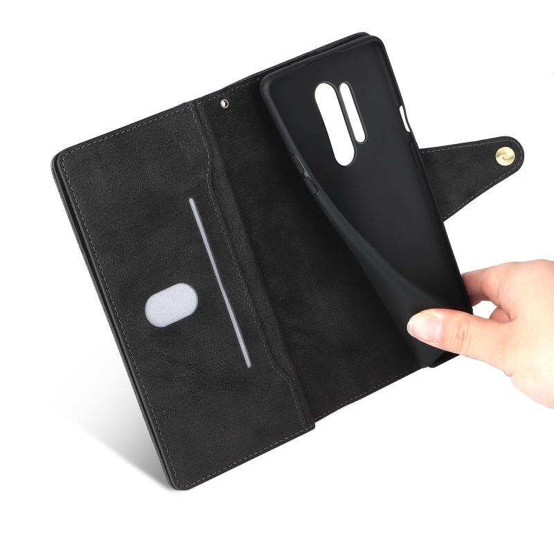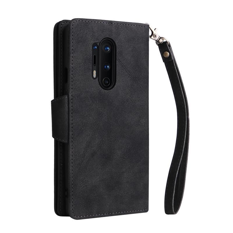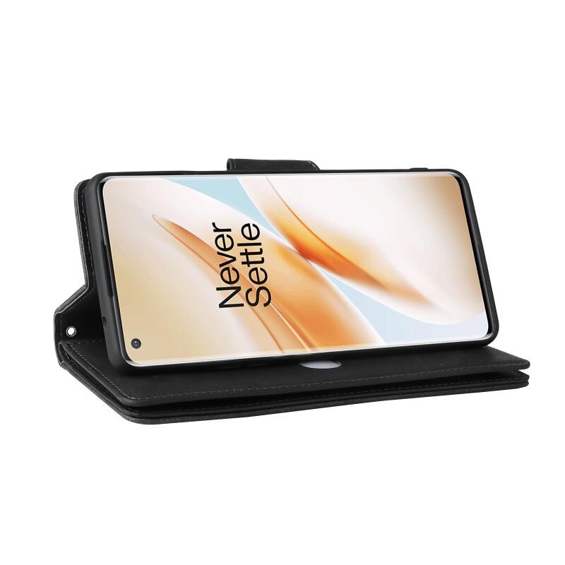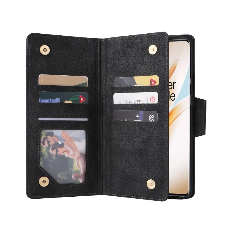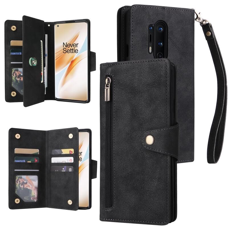 Για OnePlus 8 Pro Rivet πόρπη 9 κάρτες τρεις φορές δερμάτινη θήκη τηλεφώνου (μαύρο)
