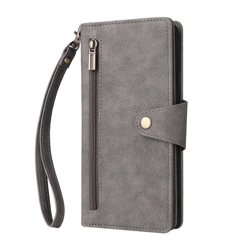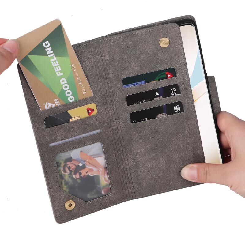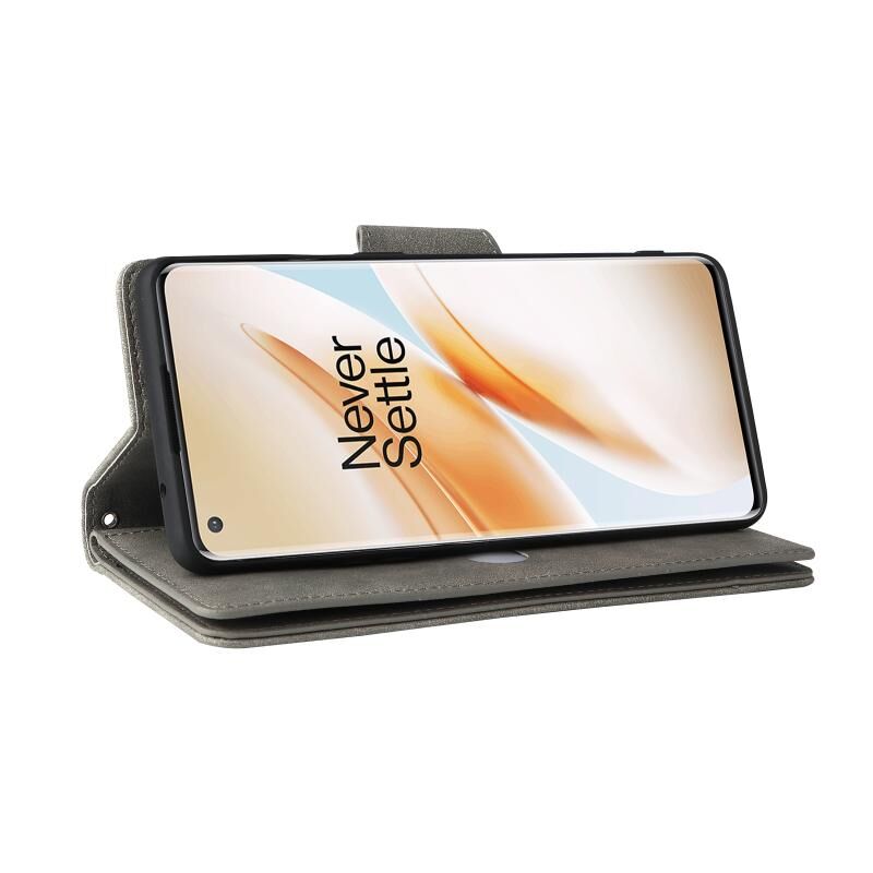 Για OnePlus 8 Pro Rivet πόρπη 9 κάρτες τρεις φορές δερμάτινη θήκη τηλεφώνου (γκρι)