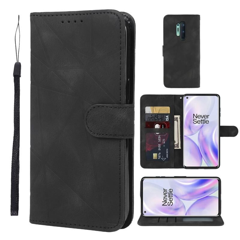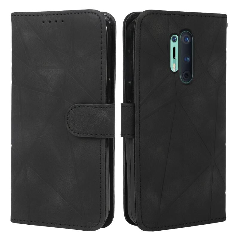 Για OnePlus 8 Pro Skin Feel γεωμετρικές γραμμές δερμάτινη θήκη τηλεφώνου (Μαύρο)