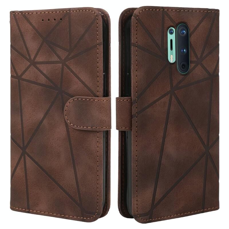 Για OnePlus 8 Pro Skin Feel γεωμετρικές γραμμές δερμάτινη θήκη τηλεφώνου (καφέ)