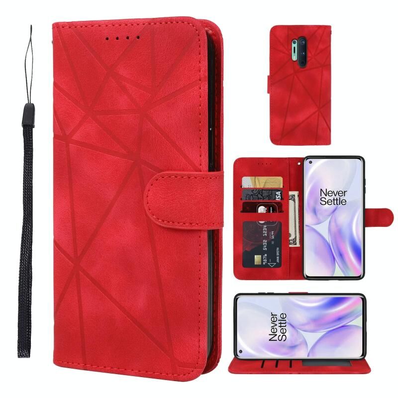 Για OnePlus 8 Pro Skin Feel γεωμετρικές γραμμές δερμάτινη θήκη τηλεφώνου (κόκκινο)