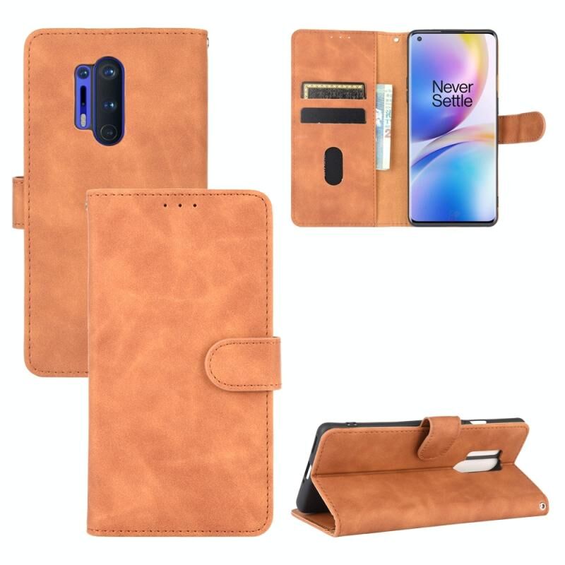 Για OnePlus 8 Pro Solid Color δέρμα αίσθηση μαγνητική πόρπη οριζόντια Flip μοσχάρι υφή PU δέρμα υπόθεση με κάτοχο & υποδοχές καρτών & πορτοφόλι (καφέ)