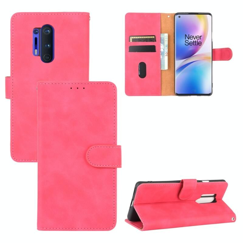 Για OnePlus 8 Pro Solid Color Skin Feel μαγνητική πόρπη οριζόντια Flip μοσχάρι υφή PU δέρμα υπόθεση με κάτοχο & υποδοχές καρτών & πορτοφόλι (Rose Red)