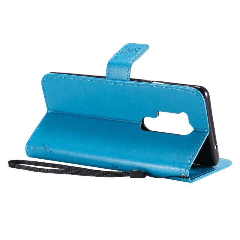Θήκη για OnePlus 8 Pro με σχέδιο Δέντρου & Γάτας, εκτυπωμένη με θερμοτύπηση, οριζόντια, από δερματίνη PU με βάση στήριξης & θήκες για κάρτες & πορτοφόλι & κορδόνι (Μπλε)