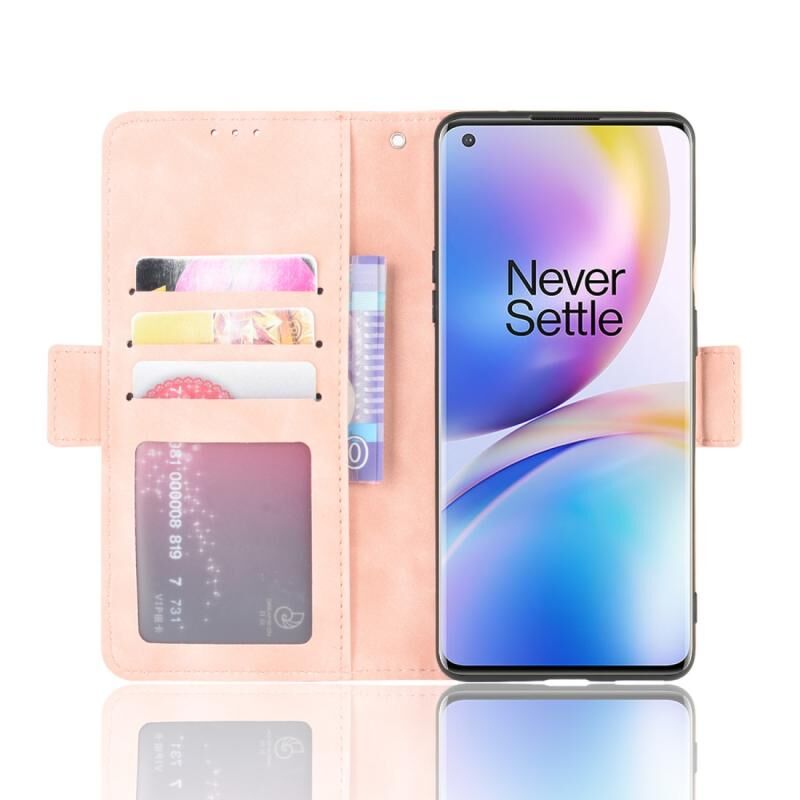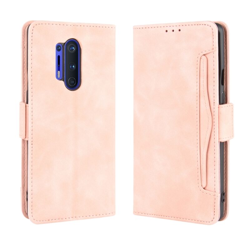 Για το OnePlus 8 Pro Wallet Style δέρμα δέρμα αίσθηση μοσχάρι μοτίβο δερμάτινη θήκη με ξεχωριστή υποδοχή κάρτας (ροζ)