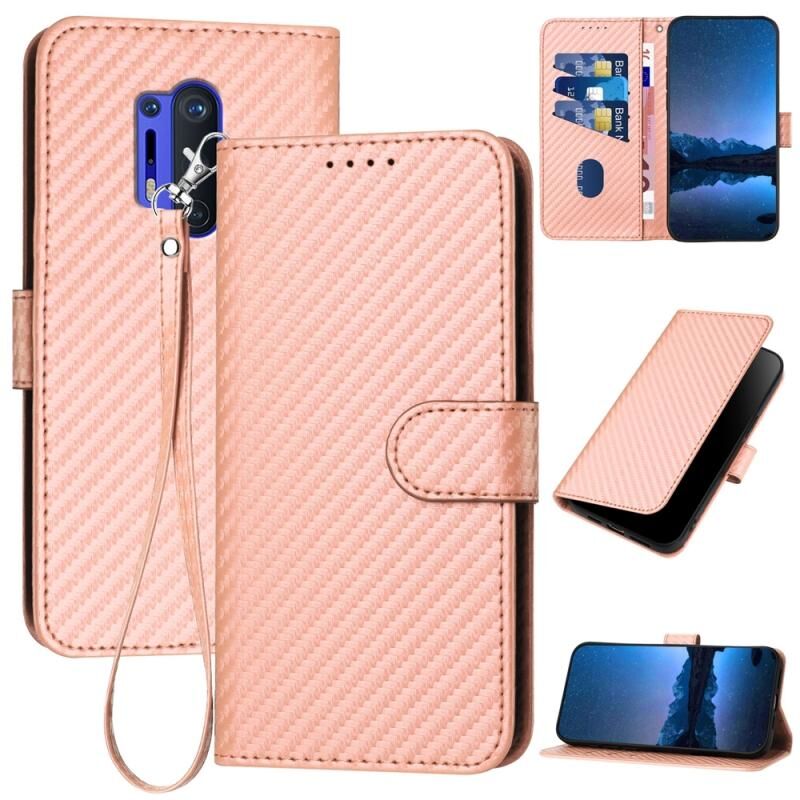 Για OnePlus 8 Pro YX0070 Carbon Fiber πόρπη δερμάτινη θήκη τηλεφώνου με κορδόνι (ροζ)