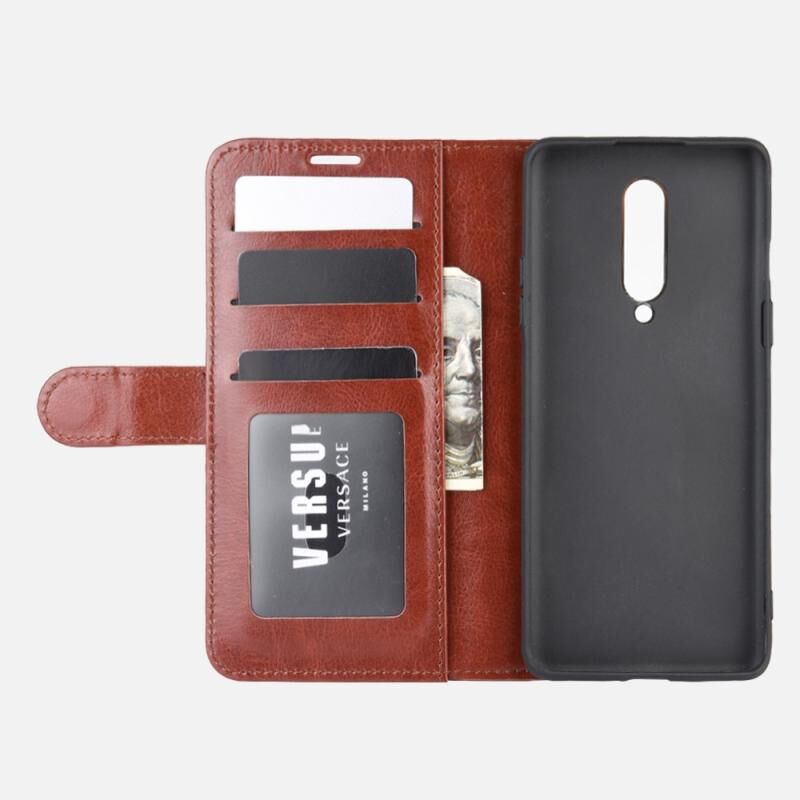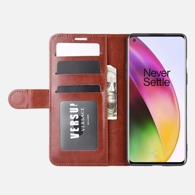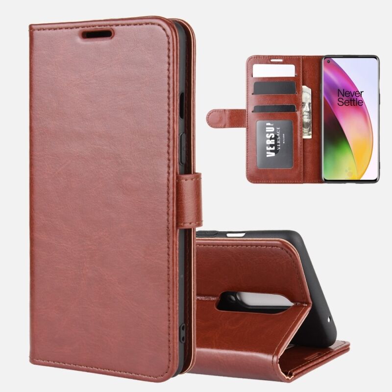Για OnePlus 8 R64 Υφή Ενιαία οριζόντια Flip προστατευτική θήκη με κάτοχο & υποδοχές καρτών & πορτοφόλι & πλαίσιο φωτογραφιών (καφέ)