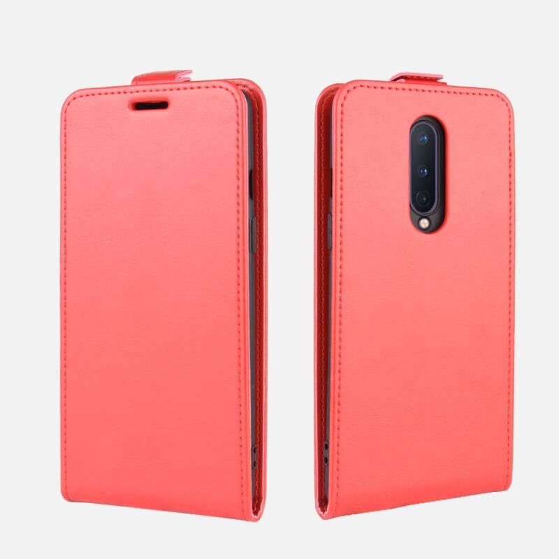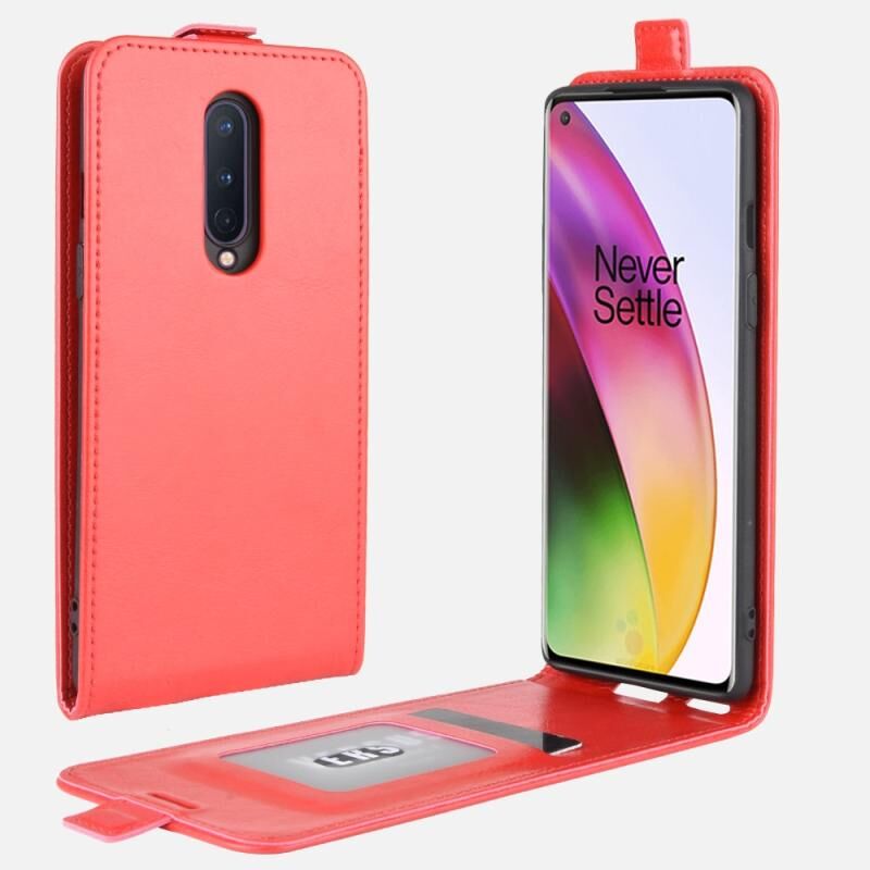Για OnePlus 8 R64 Υφή ενιαία κάθετη Flip δέρμα προστατευτική θήκη με υποδοχές για κάρτες & πλαίσιο φωτογραφιών (κόκκινο)