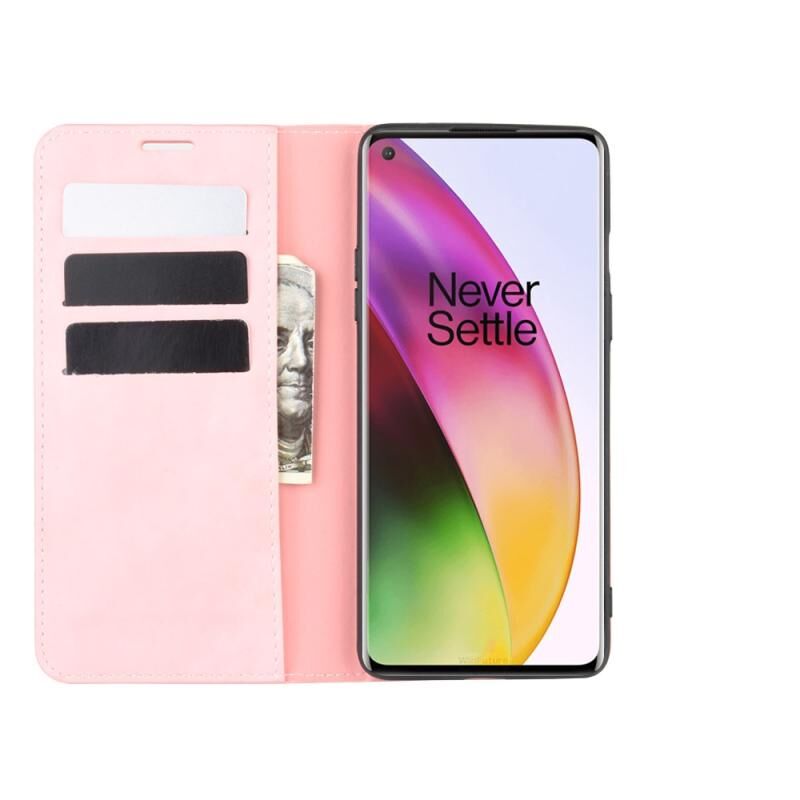 Για OnePlus 8 Retro-skin Business μαγνητική δερμάτινη θήκη αναρρόφησης με θήκη & υποδοχές καρτών & πορτοφόλι (ροζ)