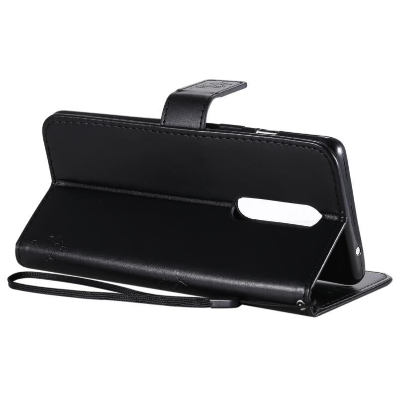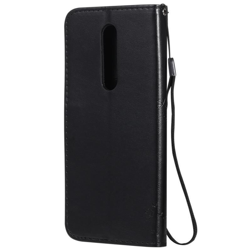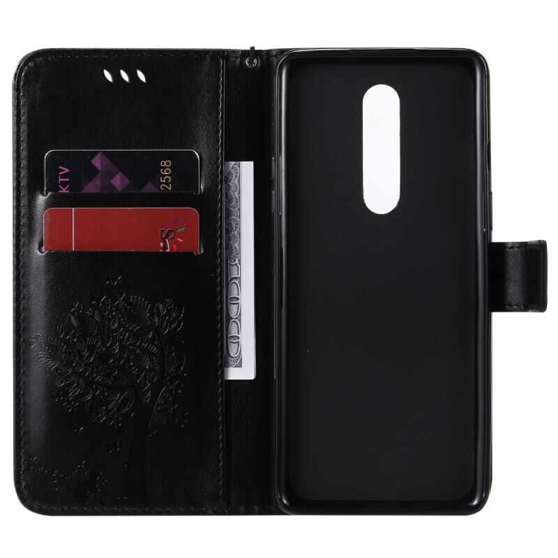 Θήκη για OnePlus 8 με σχέδιο Δέντρου & Γάτας, εκτύπωση με πίεση, οριζόντια αναδίπλωση, από δερματίνη PU με βάση & υποδοχές καρτών & πορτοφόλι & κορδόνι (Ροζ)