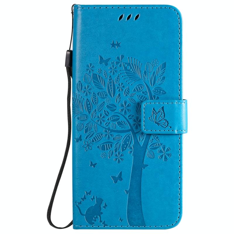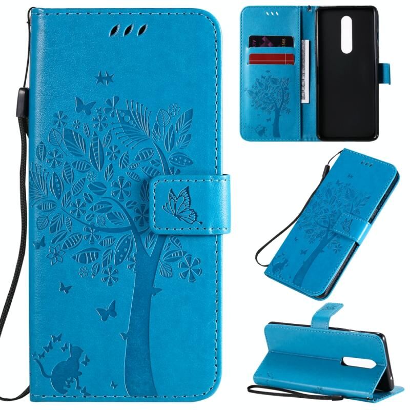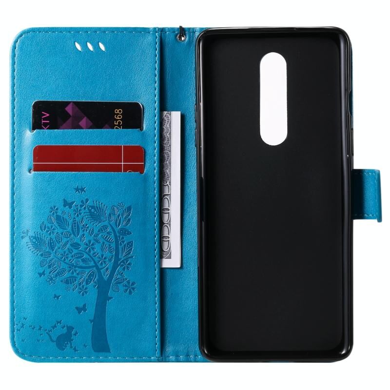 Θήκη για OnePlus 8 με σχέδιο Δέντρου & Γάτας, εκτύπωση με πίεση, οριζόντια αναδίπλωση, από δερματίνη PU με βάση & υποδοχές καρτών & πορτοφόλι & κορδόνι (Πράσινο)