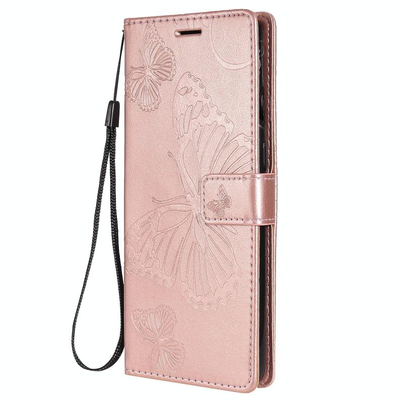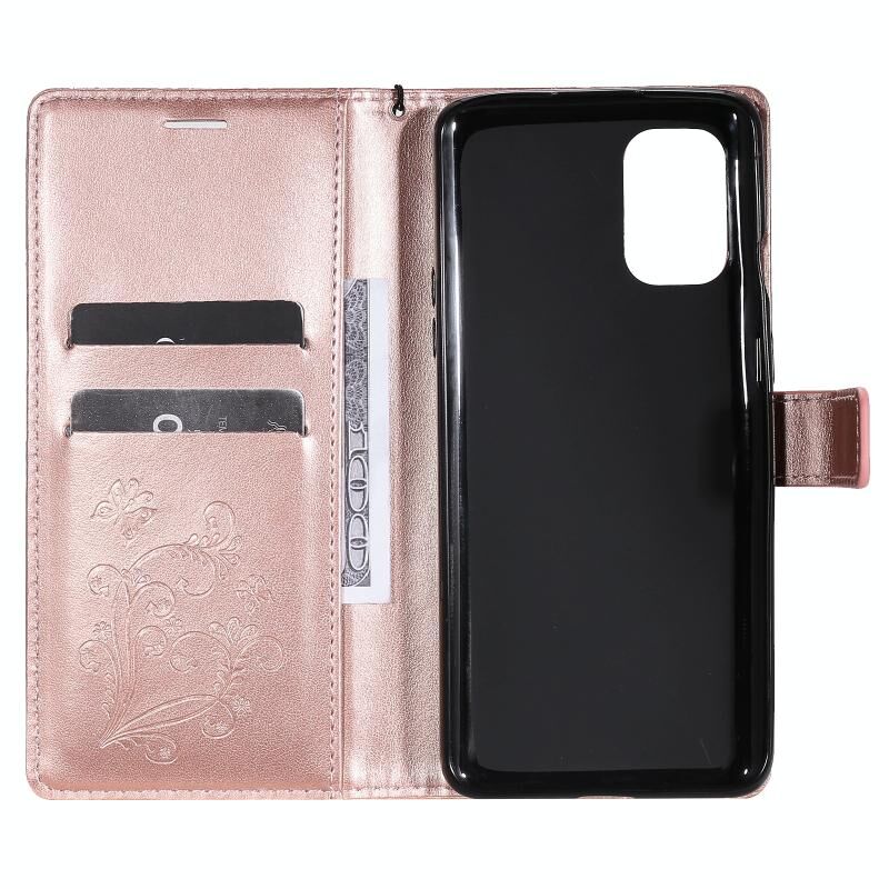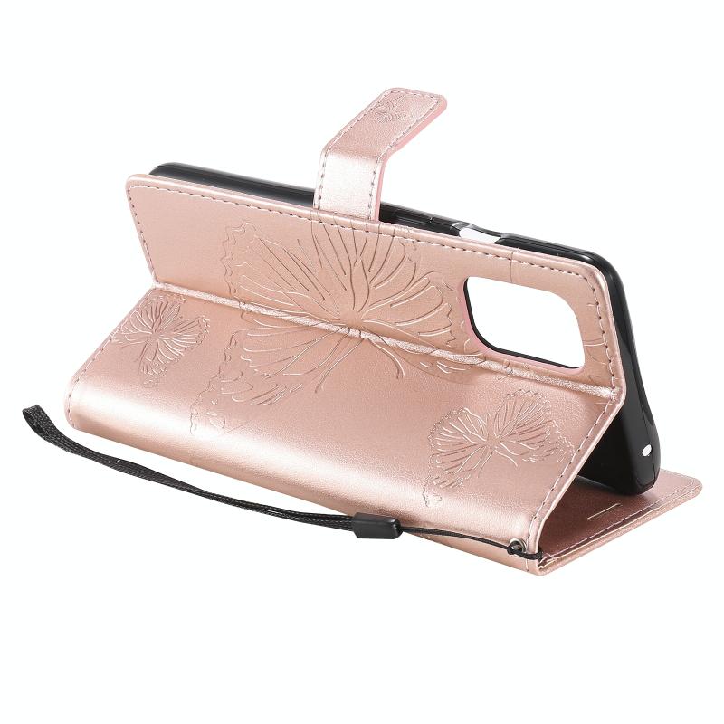 For OnePlus 8T 3D Butterflies Embossing Pattern Horizontal Flip Leather Case with Holder & Card Slot & Wallet(Rose Gold)