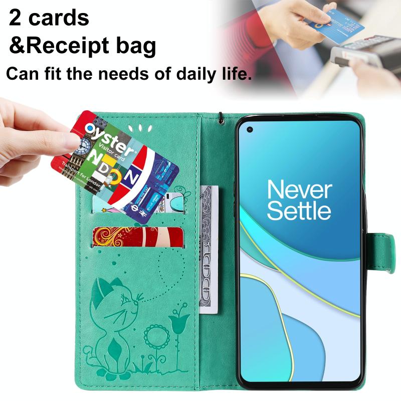 For OnePlus 8T Cat Bee Embossing Pattern Shockproof Horizontal Flip Leather Case with Holder & Card Slots & Wallet(Green)