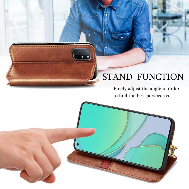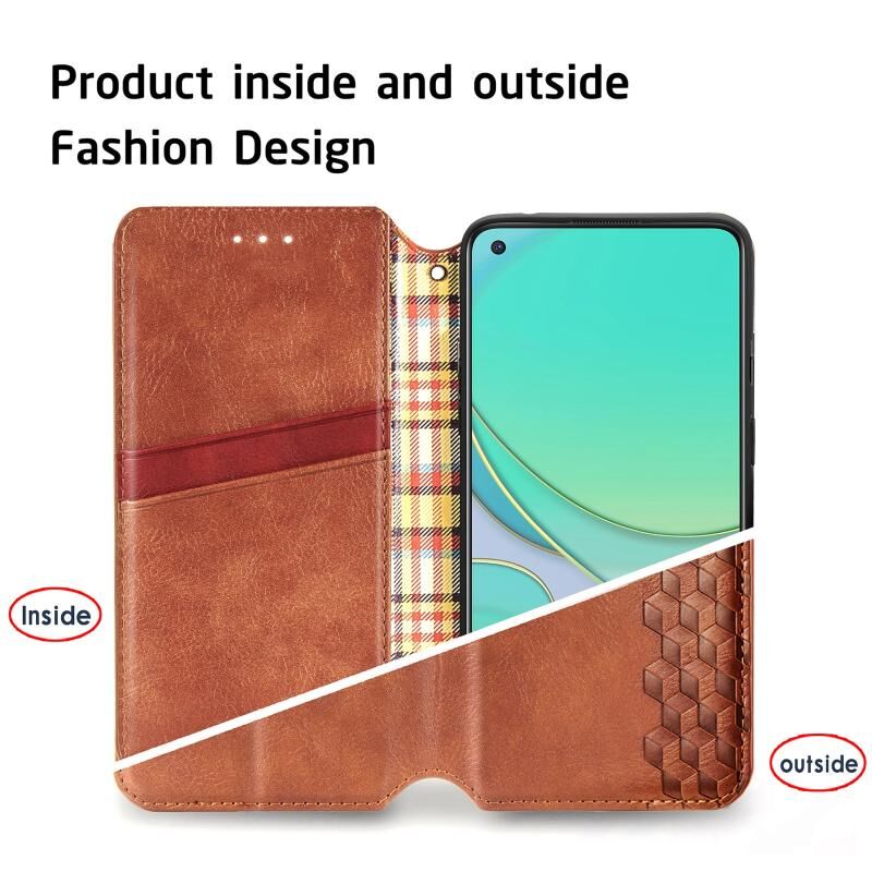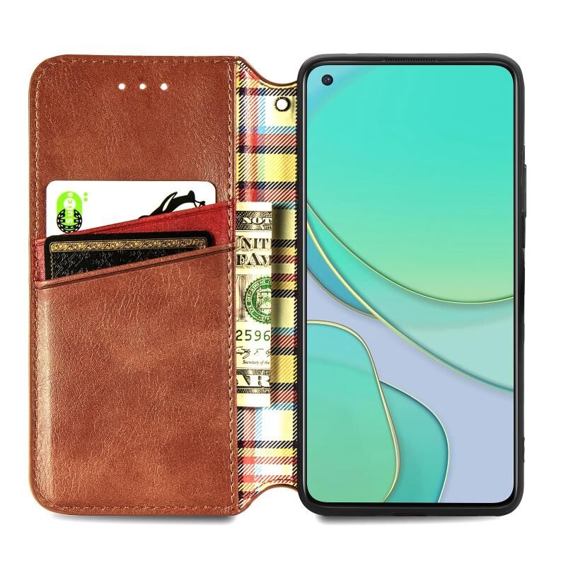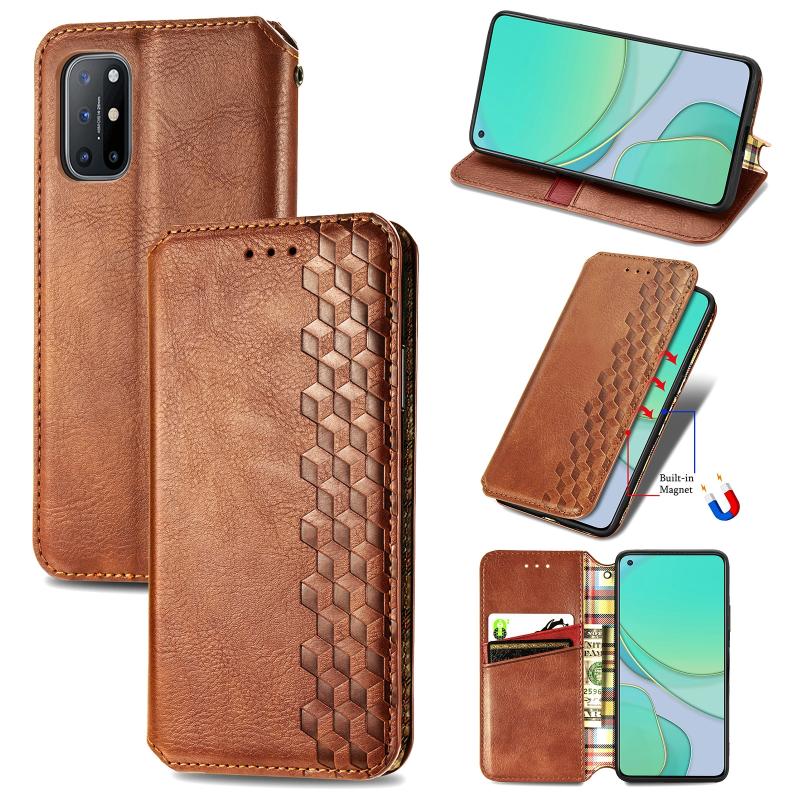 For OnePlus 8T Cubic Grid Pressed Horizontal Flip Magnetic PU Leather Case with Holder & Card Slots & Wallet(Brown)