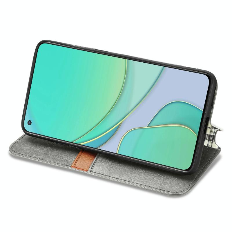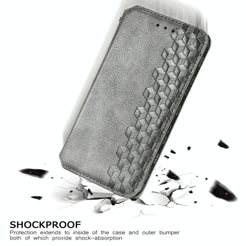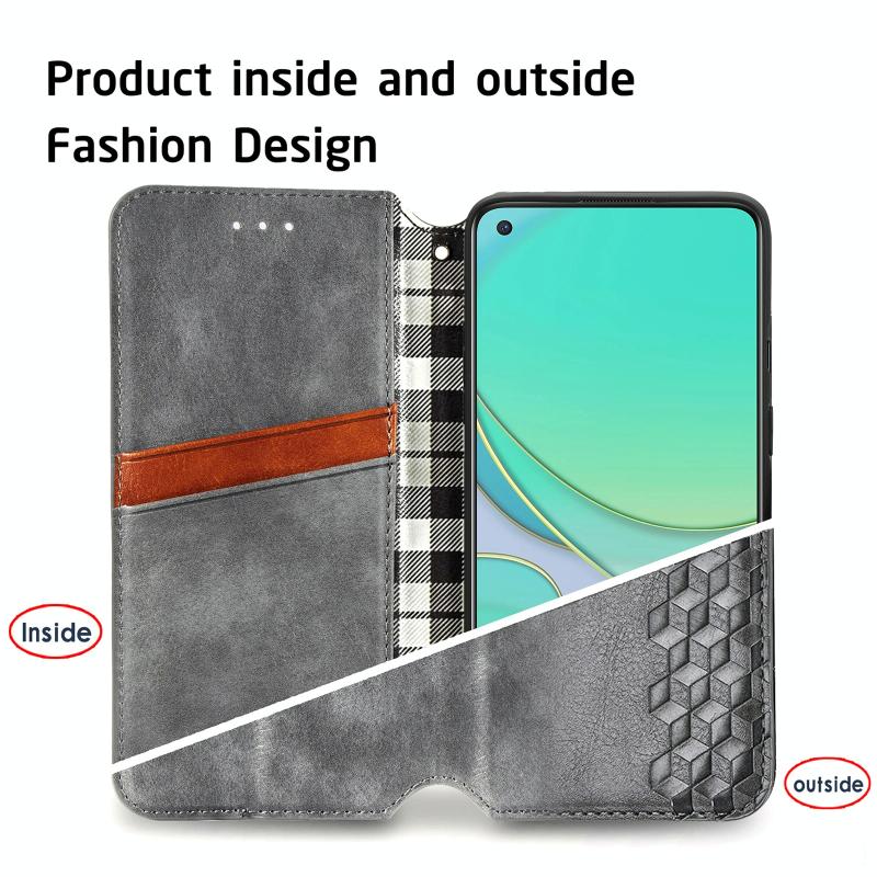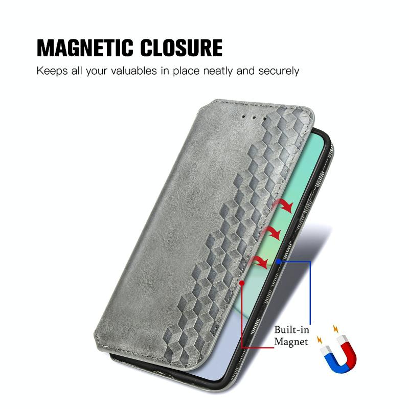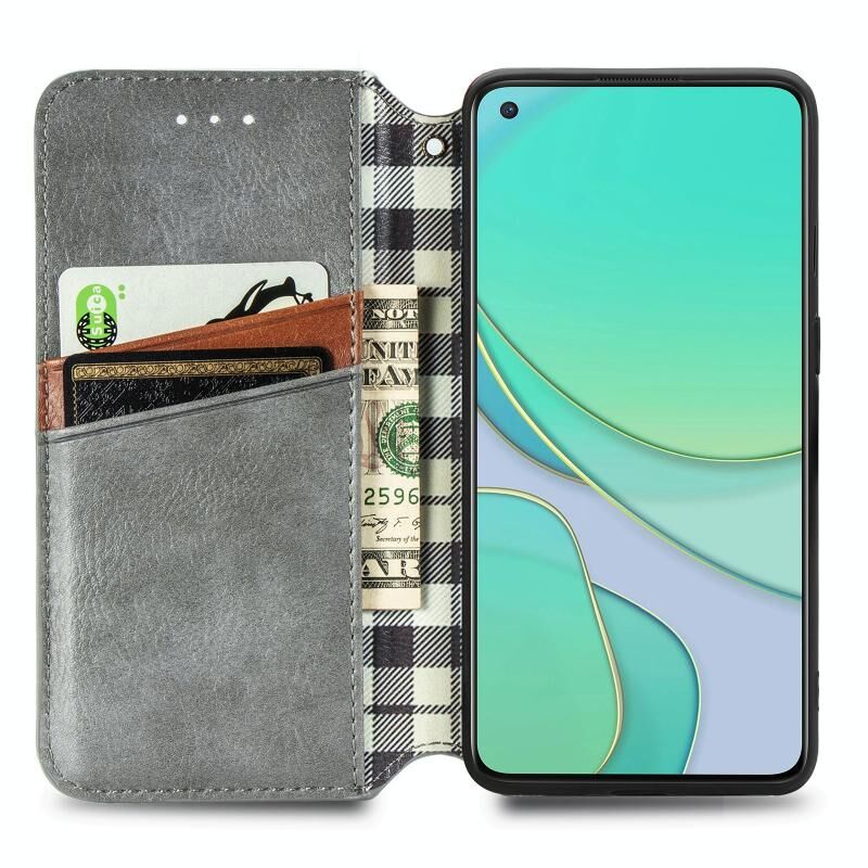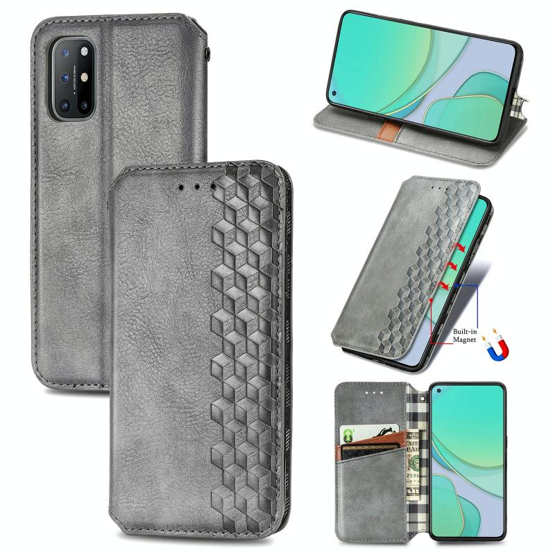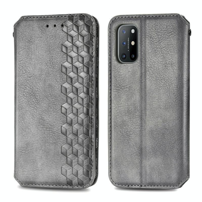For OnePlus 8T Cubic Grid Pressed Horizontal Flip Magnetic PU Leather Case with Holder & Card Slots & Wallet(Grey)