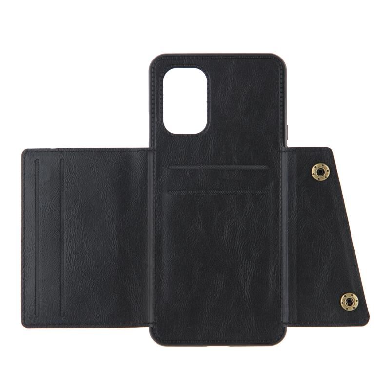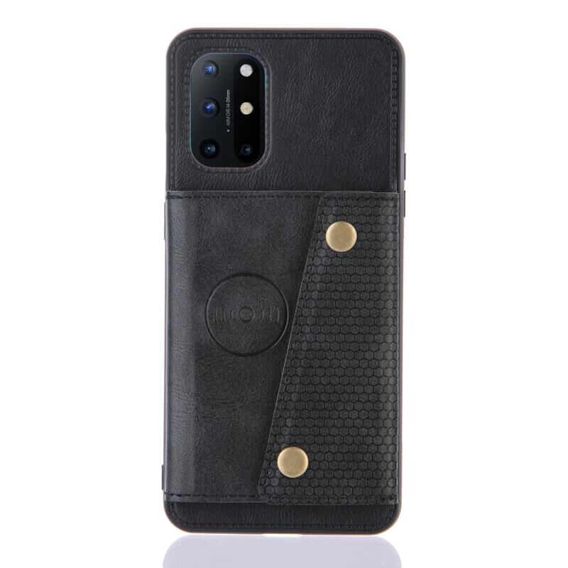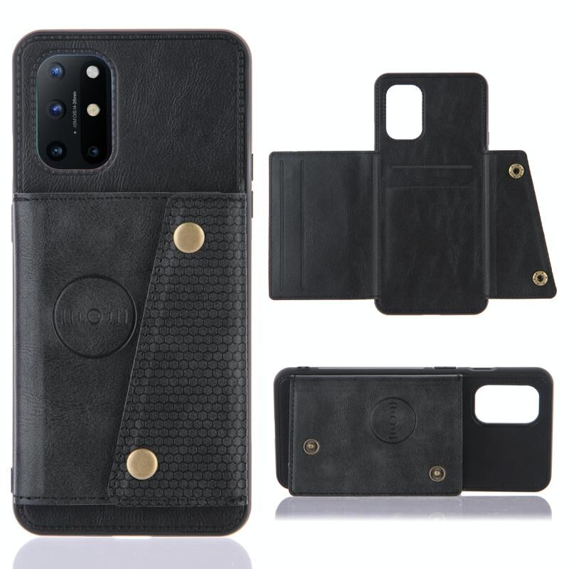 Για OnePlus 8T Διπλή πόρπη PU + TPU Shockproof μαγνητική προστατευτική θήκη με υποδοχές καρτών & κάτοχος (Μαύρο)